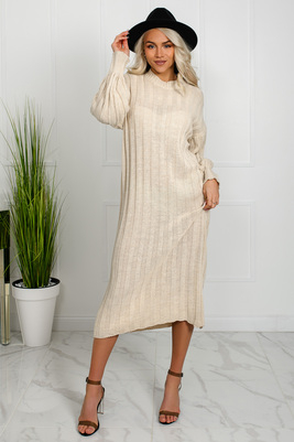Mõnusalt soe soonikkoes pikkade varrukate ja kõrge kaelusega kudumkleit. Kleidil on kergelt lohvakad varrukad ja mõnus pikk lõige. Suurus sobib XS-XL kandjale.