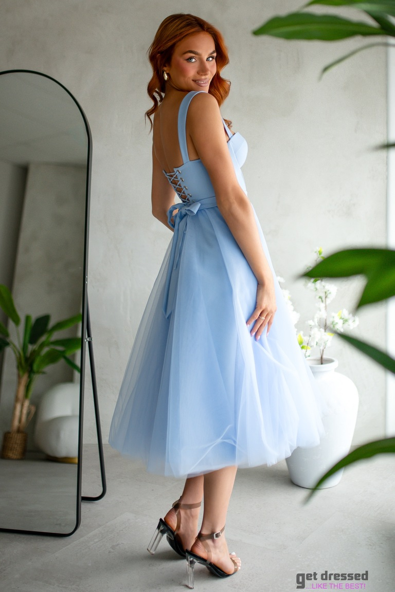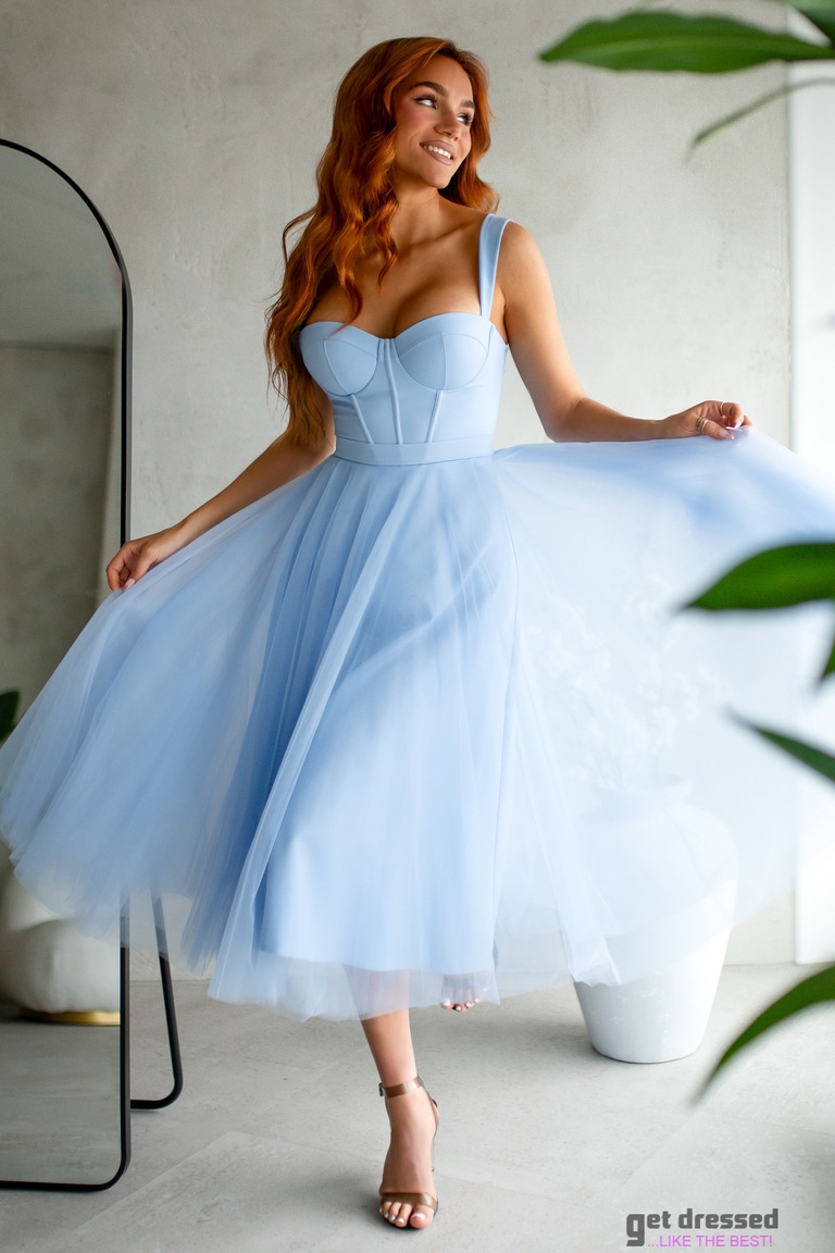 Lõpukleit Katriina on elegantsuse ja naiselikkuse kehastus. See helesinine iludus on loodud tähelepanu püüdmiseks ja unustamatu mulje jätmiseks. Kleidi midi pikkus lisab modernsust, samal ajal kui tüllseelik annab kleidile kerguse ja õhulisuse.