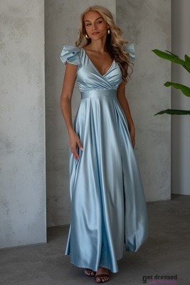 Roxy on luksuslik maksikleit, mille õrn helesinine toon sulandub sujuvalt pehmesse satiinkangasse.
