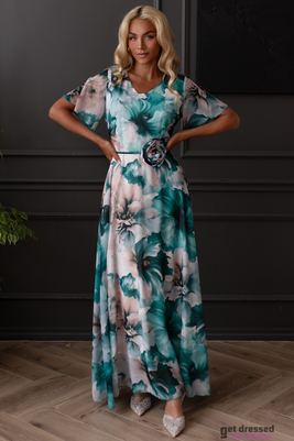 See õhuline kleit lummab oma rohelistes toonides lillelise mustriga, mis toob esile kevadise värskuse ja suvise kerguse. Kleidi lühikesed varrukad ja v-kaelus lisavad õrnust ja kergust, samas kui alusseelik tagab mugavuse ja sobivuse igaks sündmuseks.