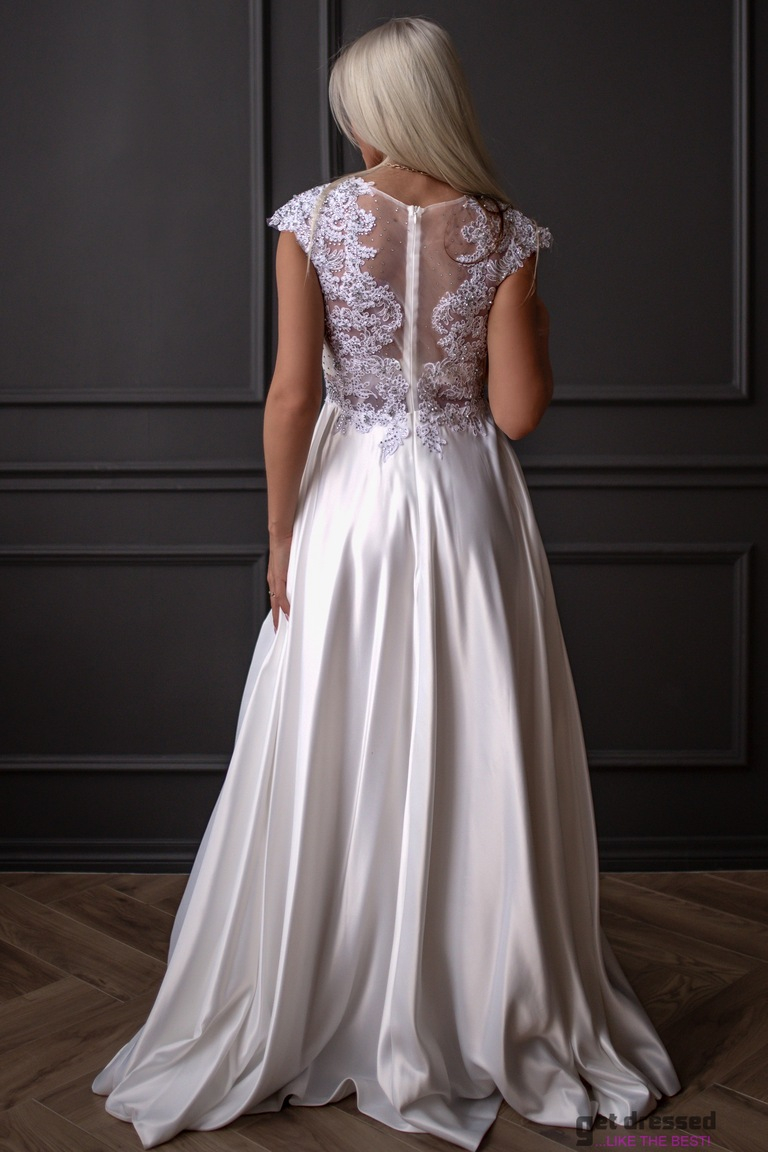 Seljaosal asuv lukk tagab lihtsa ja mugava kinnituse ning samal ajal lisab kleidile veidi peenust ja elegantsi. Alusseelik täiendab kleidi voolavat siluetti, andes talle täieliku lõppviimistluse ning tagades, et tunned end oma erilisel päeval imeliselt.